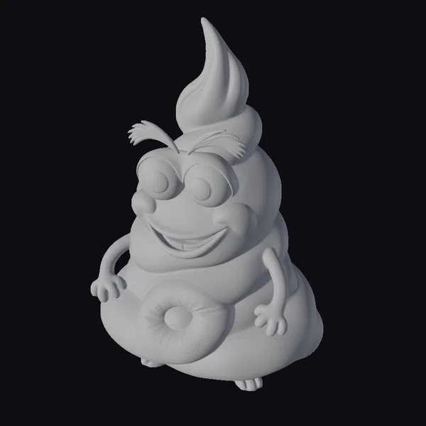 Detailed with a mischievous grin and large, expressive eyes, this brown poop character model exudes a playful vibe. Its shiny texture and smooth curves make it visually appealing. The character’s pose, with hands on its sides and a cheeky smile, adds to its comedic charm. This model is perfect for projects requiring a humorous or whimsical touch, such as animations, games, or decorative items.