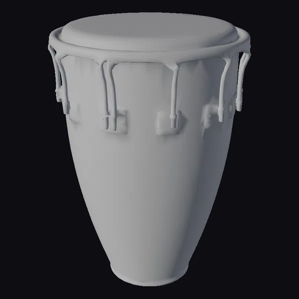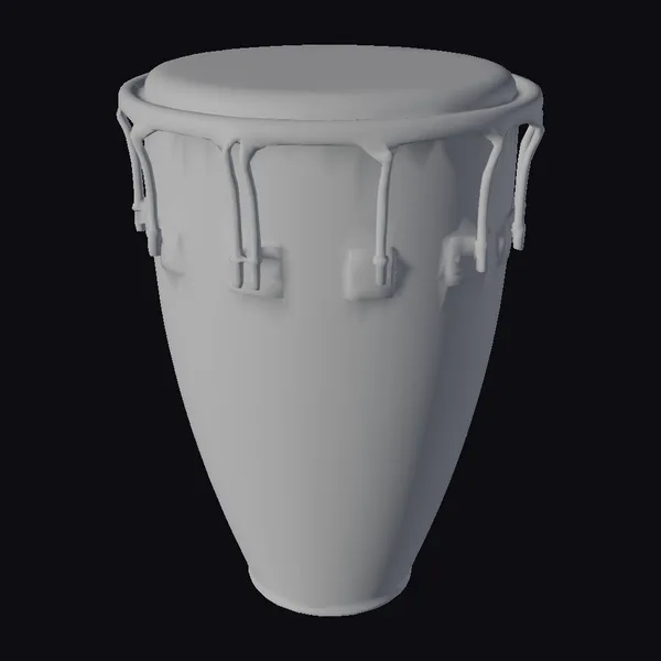 In a dynamic pose, showcasing its intricate details, this brown conga drum boasts a rich, warm wooden body with a smooth, slightly worn finish. Eight shiny metal lugs adorn the drum, each one meticulously crafted to add a touch of realism to this 3D model. The animal skin head, with its subtle texture and natural coloration, invites the viewer to imagine the rhythmic beats it could produce. Whether you’re a musician, music producer, or simply a music enthusiast, this conga drum model is perfect for games, 3D printing, VR/AR experiences, animation projects, or design visualizations.