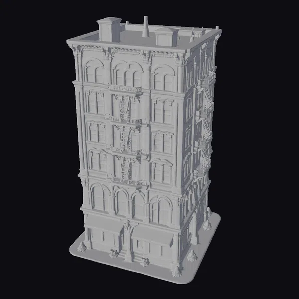 The Model “Brownstone Corner Building” is also available upon request in many other 3D formats, such as 3MF, BLEND, FBX, OBJ, USDZ and others, making it easy to integrate into your project.