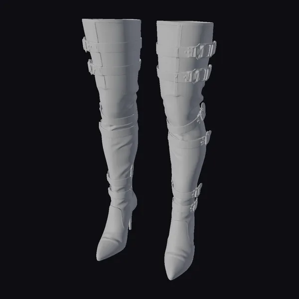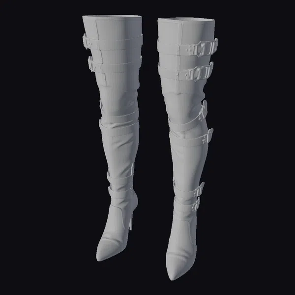 Standing tall with their sleek, pointed toes and sharply angled heels, these buckled leather knee boots are a marvel of detailed design. The dark leather, possibly finished with a slight sheen, wraps around the leg, secured by multiple straps adorned with elegant buckles. The boots’ high heels add a dramatic flair, making them a focal point in any 3D environment. Whether you’re crafting a virtual fashion show, enhancing a character’s wardrobe, or simply looking for a realistic footwear model for your project, these boots bring a touch of sophistication. Their realistic texture and precise detailing make them suitable for various applications, including games, animation, VR/AR experiences, and architectural visualizations.