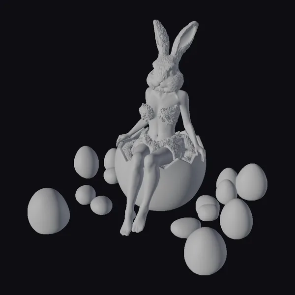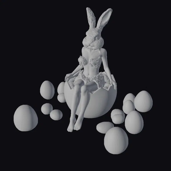The Model “Bunny Girl with Eggs” is also available upon request in many other 3D formats, such as 3MF, BLEND, FBX, OBJ, USDZ and others, making it easy to integrate into your project.