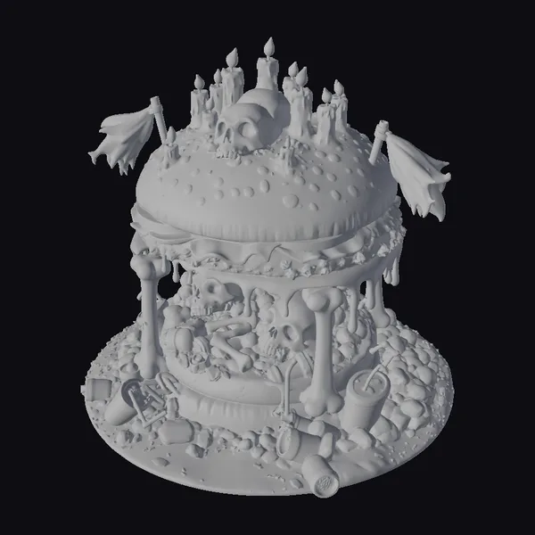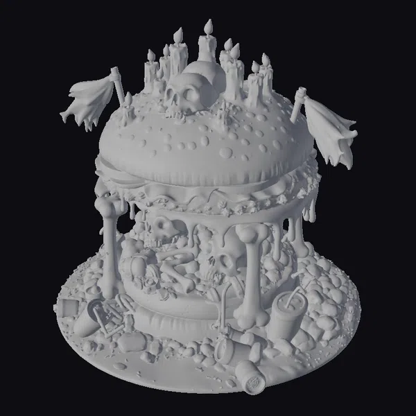 The Model “Burger Skull Cake” is also available upon request in many other 3D formats, such as 3MF, BLEND, FBX, OBJ, USDZ and others, making it easy to integrate into your project.