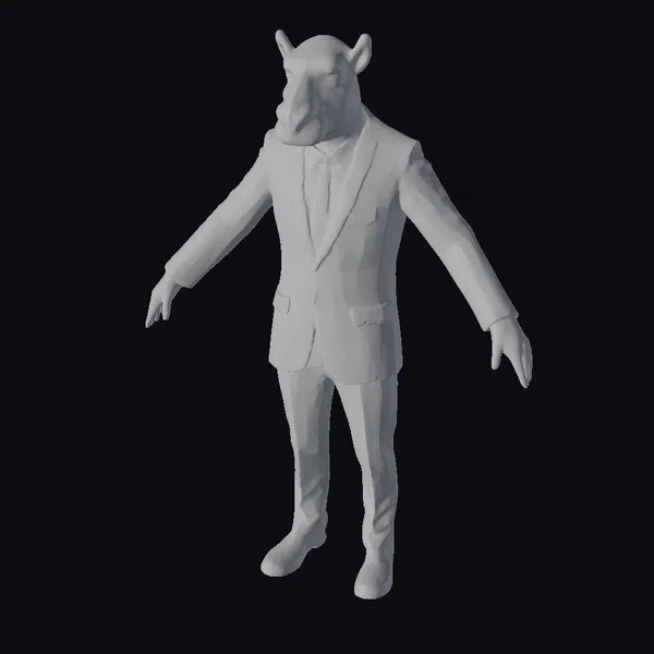 The Model “Businessman Camel” is also available upon request in many other 3D formats, such as 3MF, BLEND, FBX, OBJ, USDZ and others, making it easy to integrate into your project.