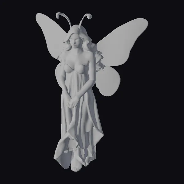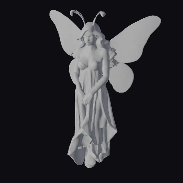 This captivating fairy figure boasts intricate details, from the delicate folds of her green dress to the shimmering textures of her butterfly wings. Her white hair flows like silk, and her serene expression invites the viewer to step into a world of fantasy. The fairy’s pose, with hands clasped together, conveys a sense of gentle anticipation. Her large, monarch-like wings dominate the scene, casting a soft, dreamy glow. This model is perfect for use in games, animation, VR/AR experiences, and design projects, where a touch of magic and wonder is needed.