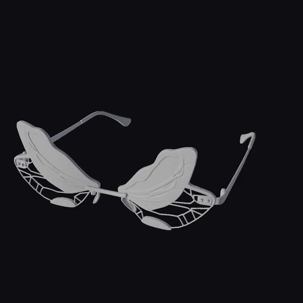 Perched atop a slender gold bridge, the intricately designed butterfly wings unfold in mesmerizing detail. The leaves, a deep green with light green veins, appear almost lifelike, as if plucked straight from a fantastical forest. The black temples provide a sleek contrast to the organic beauty of the wings, which seem to flutter with every glance. Whether you’re a designer seeking to breathe life into your next project or a creative looking for a statement piece, these butterfly wing sunglasses are sure to captivate. Ideal for use in games, 3D printing, VR/AR experiences, animation, and design projects.