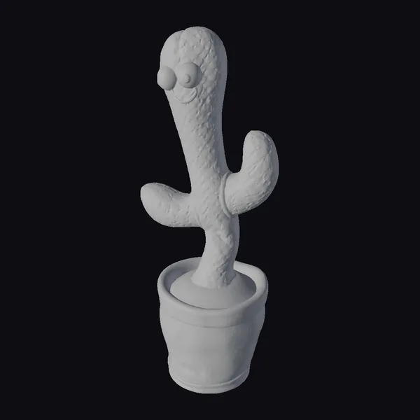 Detailed with a textured, green surface and a vibrant, brown-rimmed terracotta pot, this cactus toy exudes playfulness. Its expressive face features large, white eyes with black pupils and a bright red smile. The cactus has three rounded arms, adding to its endearing appearance. The pot’s earthy tones complement the cactus’s lively green hue. Ideal for adding a touch of whimsy to games, animations, or 3D scenes, this model is perfect for designers seeking a fun, eye-catching element.
