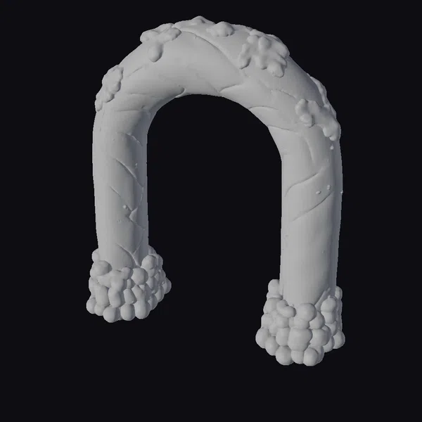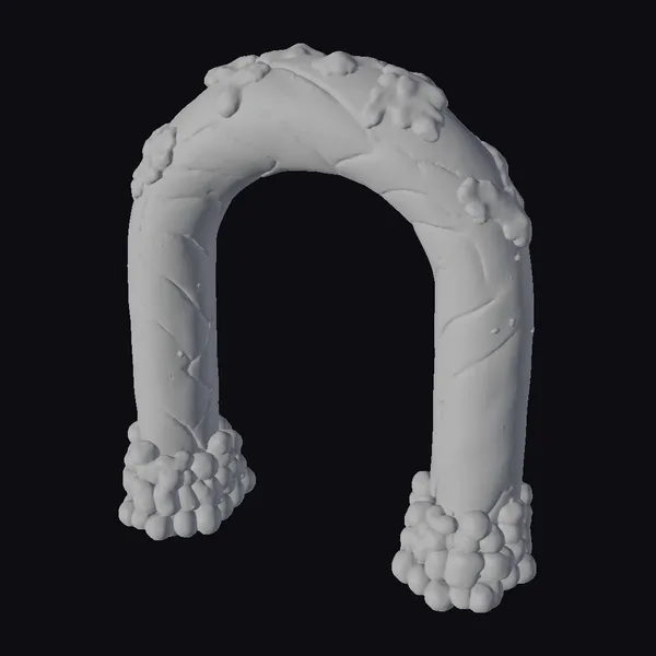 This candy cane archway boasts a sturdy, chunky design with vibrant red and white stripes that swirl around its body in a classic candy cane pattern. The glossy finish enhances its appeal, making it a perfect centerpiece for holiday celebrations. The frosting caps at both ends add a delicate touch, while clusters of small, multicolored candy pieces hang enticingly from the base. Ideal for adding a pop of festive fun to games, 3D prints, VR/AR experiences, animations, or design projects. Its unique blend of whimsy and elegance ensures it stands out in any setting.