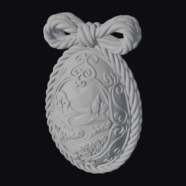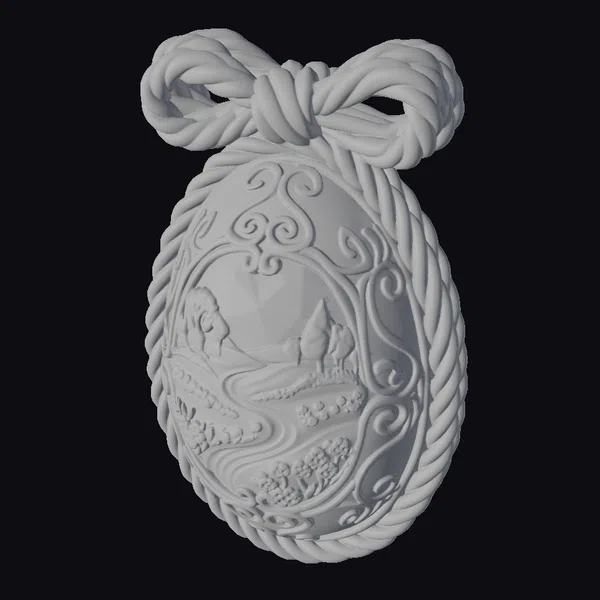At the heart of this exquisite Easter-themed locket lies a meticulously crafted garden scene, set within a golden filigree frame that dances across the chocolate-brown surface of the egg. The landscape itself is a marvel of miniature artistry, featuring lush green hills dotted with purple flowers, a meandering path, and trees bursting with pink blossoms under a soft blue sky. The egg is enveloped by twisted candy canes, their red and white stripes adding a pop of festive color. This locket is perfect for those who cherish whimsical designs and the magic of Easter. Its detailed design makes it an ideal choice for 3D printing, animation projects, or as a unique virtual prop. The quality of the model invites close inspection, with every detail from the texture of the candy canes to the delicate flowers in the garden scene meticulously rendered.