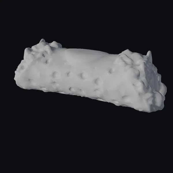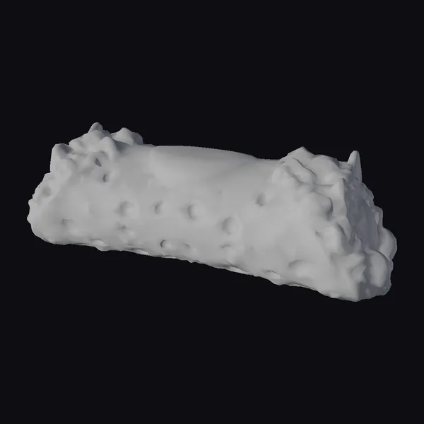 Detailed with precision, the cannoli shell boasts a golden brown color with darker spots, giving it a realistic texture. The cat’s face, peeking out from the creamy white frosting, features a sweet expression with rosy cheeks and dark eyes. Chocolate chips adorn the top of the frosting, adding a pop of color and realism. This model is perfect for use in games, animations, or 3D designs where a touch of whimsy is needed. Its unique design makes it an excellent addition to any dessert-themed project or cartoon-style animation.