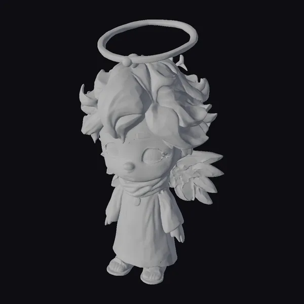 Imagine a serene little angel with a gentle smile, adorned in a flowing white robe and a halo that shines bright gold. This charming cartoon avatar features soft gray hair and delicate wings, exuding a calm and peaceful aura. The intricate details, from the golden necklace to the subtle shine on the silver shoes, make this model a delightful addition to any project.