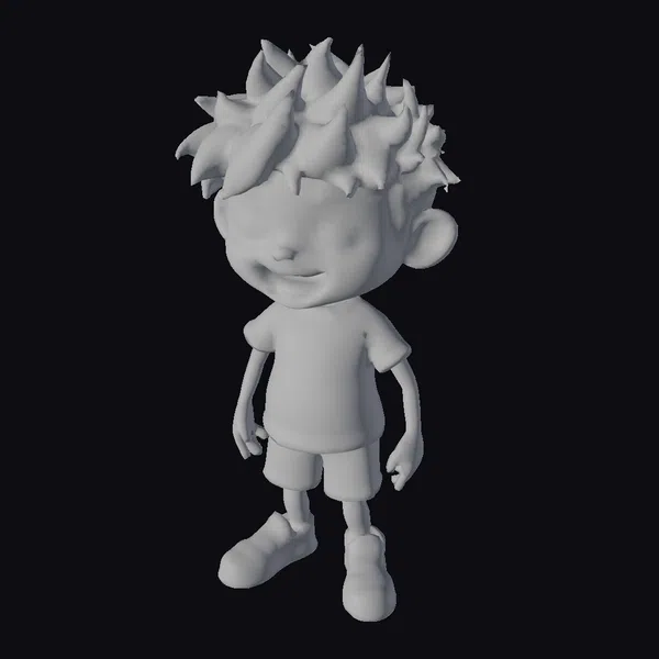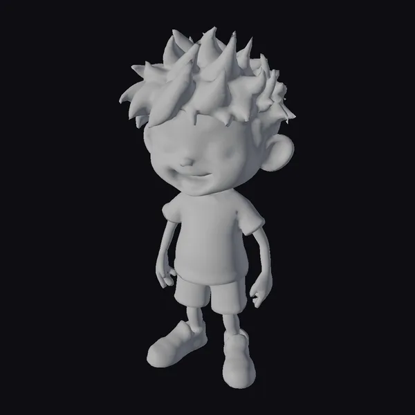 Standing with a slight lean to one side, this cartoon boy exudes a sense of friendly approachability. His brown hair is styled in a spiky, tousled look, adding to his youthful and energetic appearance. The textures of his clothing are smooth and slightly shiny, suggesting a casual, everyday look that’s perfect for a variety of cartoon settings. His facial features are exaggerated for a more cartoonish appeal, with large eyes and a wide, cheerful grin. The pose is relaxed, with one arm slightly bent, inviting interaction. This model is ideal for animators and designers working on children’s content, educational videos, or any project requiring a relatable young character. Its detailed yet stylized appearance makes it suitable for both 2D and 3D animations, as well as print and VR/AR applications.