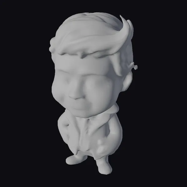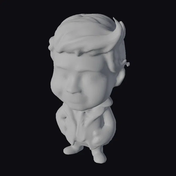 This cartoonish depiction of a businessman showcases a character with an oversized head, emphasizing a chibi-style aesthetic. The figure is dressed in a meticulously detailed blue suit, complete with a crisp white shirt and a vibrant red tie, adding a pop of color to the overall design. The character’s blonde hair is styled in a way that’s both fashionable and comically exaggerated, contributing to the model’s humorous appeal. With hands tucked into pockets, the businessman strikes a confident pose, exuding a sense of casual authority. The model’s exaggerated features and vibrant color palette make it an eye-catching addition to any project, particularly suited for applications in animation, games, or as a unique decorative piece. Its cartoonish style allows for a wide range of creative applications, from satirical content to light-hearted entertainment.