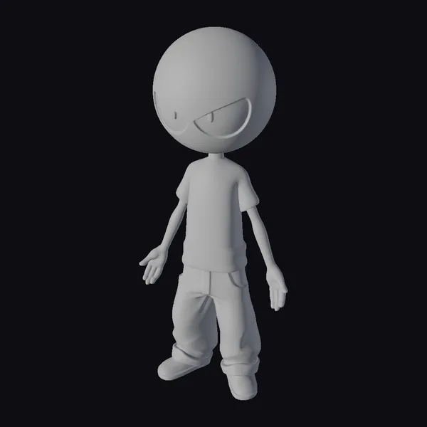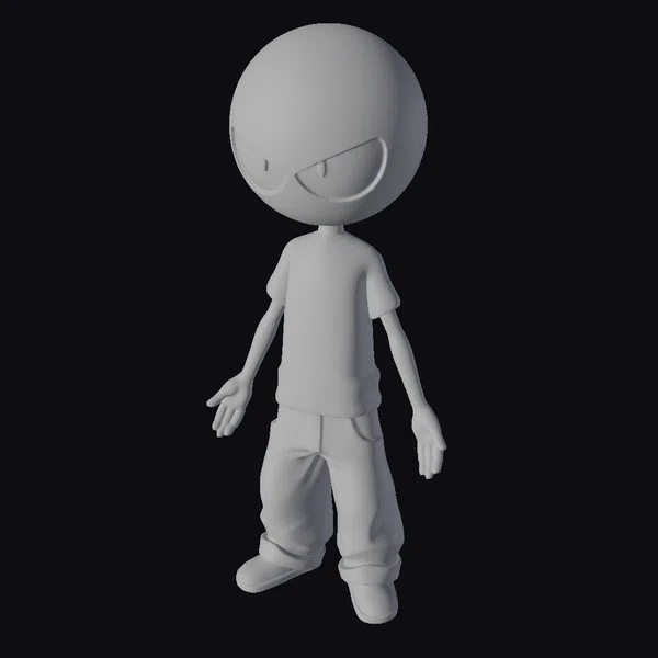 Detailed with a large, dark head and a scowl that could curdle milk, this cartoon character stands confidently with a slight slouch, exuding a laid-back yet intimidating vibe. The red shirt with white trim adds a pop of color against the character’s dark skin, while the beige pants and shoes provide a neutral background that lets the character’s face do all the talking. The simplistic design belies the depth of emotion conveyed through its facial expression, making it a versatile asset for animations, games, or any creative project needing a character with attitude. Its cartoon style ensures it’s easily recognizable and memorable, capable of engaging audiences with its unique blend of cuteness and menace.