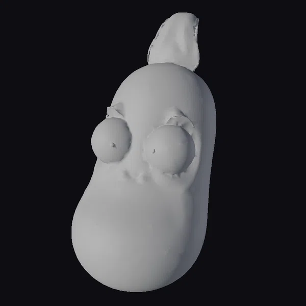 Detailed with a bulbous body and a small green sprout at the top, this coffee bean face model boasts a humorous expression with large, white eyes and a tiny mouth. The brown and green hues give it a natural yet stylized appearance. Its exaggerated features make it perfect for projects requiring a whimsical touch, such as animations, games, or quirky designs. The model’s playful demeanor can add a lighthearted element to various creative endeavors.
