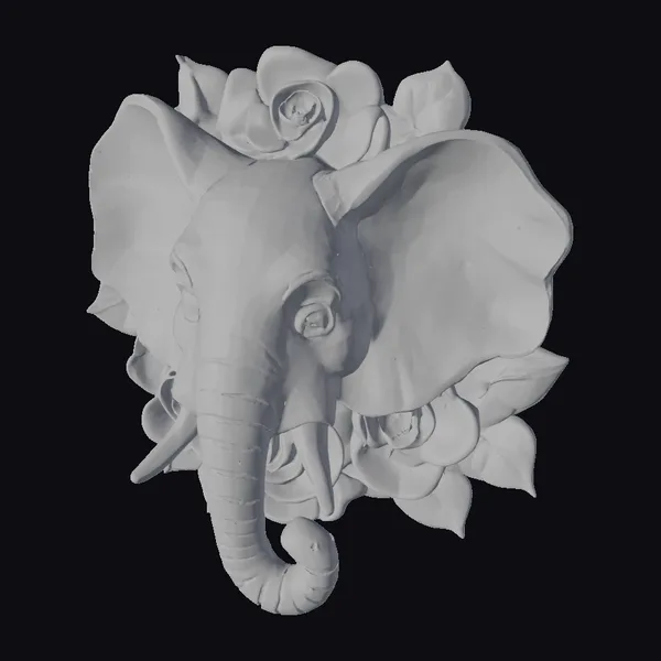 Gaze upon a meticulously crafted cartoon elephant head, hand-carved from wood and hand-painted with exquisite detail. The elephant’s gentle face is framed by large, floppy ears and a curly trunk, with pink roses and green leaves bursting from its head. The model’s advanced texturing brings out the intricate patterns on the elephant’s skin and the delicate petals of the roses. Perfect for adding a touch of whimsy to games, 3D prints, VR/AR experiences, animations, or design projects.