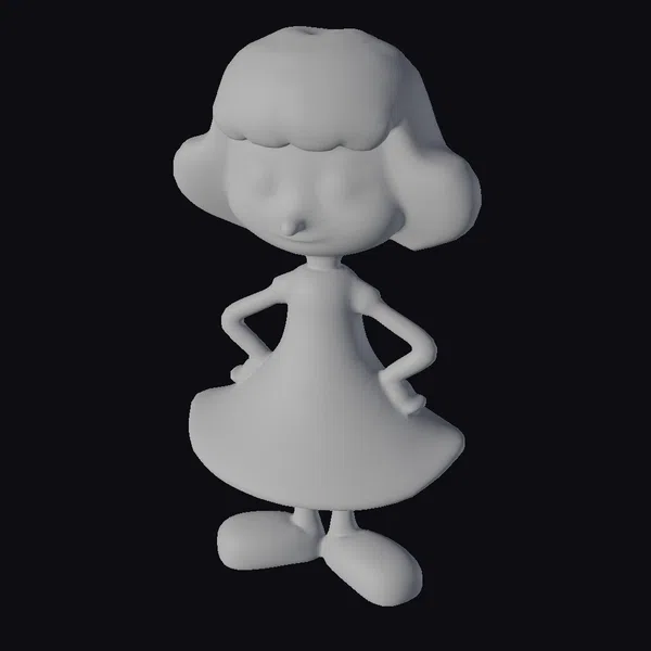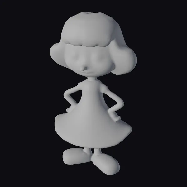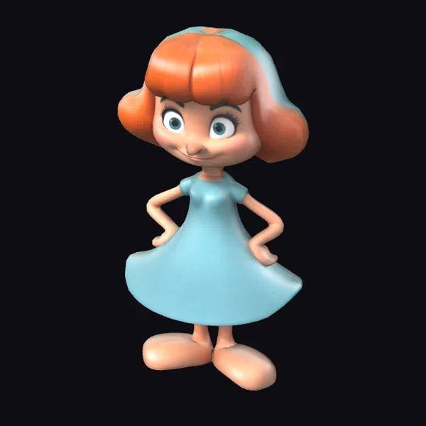 Detailed with precision, this cartoon character model showcases a radiant complexion, smooth skin tones, and meticulously crafted facial features, from the sparkle in her eyes to the subtle curve of her smile. Her blue dress and headband are rendered with a soft, slightly shiny texture, catching the light and adding depth to her overall appearance. The model’s pose, with one leg slightly forward and arms akimbo, captures a moment of sassy confidence, inviting the viewer to imagine her next move. Whether you’re working on an animated series, a video game, or a creative design project, this model is poised to bring a touch of classic cartoon charm to your work. Her high resolution and intricate details make her suitable for a variety of applications, from print and digital media to VR/AR experiences and animation.