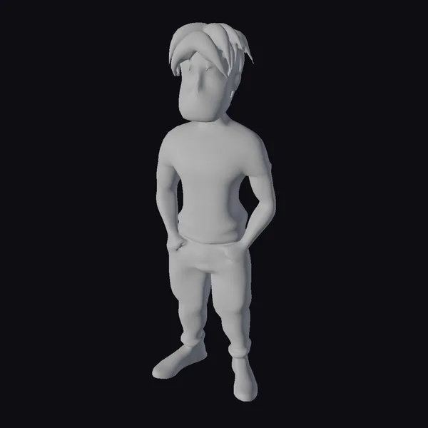 This cartoon man boasts a unique blend of style and charm, featuring a well-groomed beard and messy black hair that adds to his laid-back vibe. He wears a fitted black t-shirt with a subtle blue emblem, paired with comfortable khaki pants and black sneakers. The model’s friendly face, characterized by a gentle expression, makes him suitable for a wide range of applications, from animation and gaming to virtual reality experiences and graphic design. His relaxed pose, with hands casually tucked into his pockets, enhances his approachable and easy-going personality.
