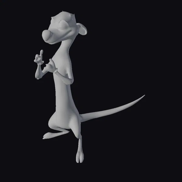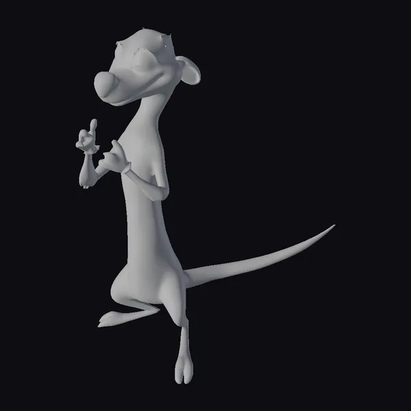Detailed with a warm, tan and brown coat and a distinctive white underbelly, this cartoon meerkat boasts a cheerful demeanor. Its large, expressive eyes sparkle with friendliness, complemented by a button nose and endearing facial features. The model’s pose, standing on its hind legs with one paw pointing forward, captures a moment of curiosity and engagement. The meerkat’s texture and shading are smooth, with subtle hints of depth that enhance its animated appearance. Ideal for projects requiring a whimsical, approachable character, such as animations, games, or children’s content.