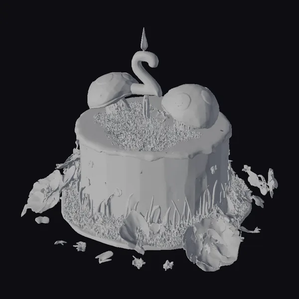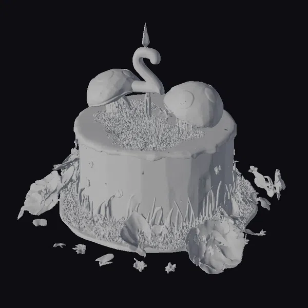 Step into a fantastical world of confectionery with this ultra-realistic cartoon mushroom cake. The cake itself boasts a smooth, cream-colored surface, complete with a rustic grassy top and a sprinkling of tiny flowers around its base. Two bright red mushroom caps with white spots add a pop of color, while a wavy number two candle flickers on top. The intricate details, from the texture of the grass to the delicate petals of the flowers, make this model perfect for use in games, 3D printing, VR/AR experiences, animation, and design projects. Bring a touch of magic to your creations with this delightful dessert.