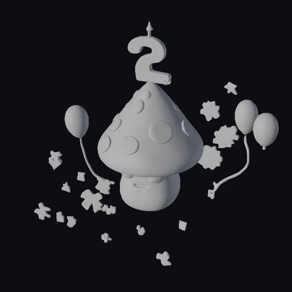 The Model “Cartoon Mushroom Birthday Fun” is also available upon request in many other 3D formats, such as 3MF, BLEND, FBX, OBJ, USDZ and others, making it easy to integrate into your project.