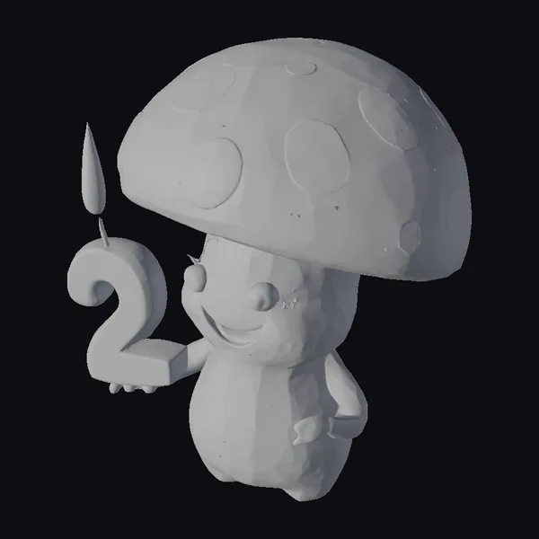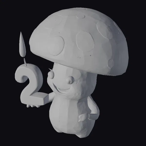 Gazing at this charming cartoon mushroom, you’ll notice its bright red cap adorned with white spots, sitting atop a cheerful, smiling face. The mushroom’s body is a soft, creamy color, with rosy cheeks adding to its endearing appearance. In one hand, it holds a yellow candle shaped like the number two, with a small flame flickering on top. The overall pose and expression convey a sense of joy and celebration. This model is ideal for use in children’s projects, birthday-themed designs, or any creative endeavor that requires a playful, festive character. Its cartoon style ensures it will bring a smile to any audience.