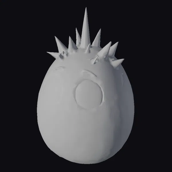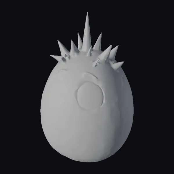 Detailed with a vibrant purple and gray marbled lower half and a spiky gray upper section, complete with wide, expressive eyes and subtle eyebrows, this cartoon shadow egg model presents a unique blend of whimsy and mystery. The contrast between its smooth, rounded body and the sharp spikes adds to its visual appeal. Ideal for use in animations, games, or as a decorative figurine in virtual environments, this model is sure to capture attention. Its cartoon style ensures versatility across various projects, from children’s entertainment to more abstract artistic expressions.