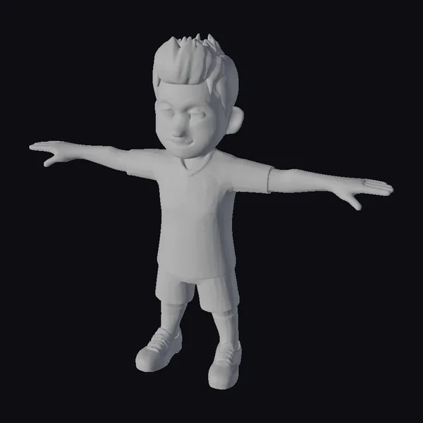 In a dynamic T-pose, this cartoonish young soccer player stands out with his athletic build and bright blue uniform, complete with a distinctive crest on the left side of his chest. His short, spiky brown hair adds to his youthful appeal, while his facial features convey a sense of friendliness and approachability. The model is meticulously detailed, with white socks and black shoes that complement his blue shorts and jersey. The outstretched arms highlight the model’s versatility for various animation and design applications. Ideal for projects requiring a vibrant, youthful character, such as animations, video games, or sports-related designs.