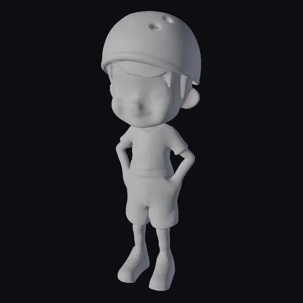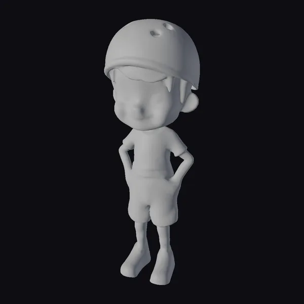 This charming cartoon teenage boy model is posed with his hands on his hips, showcasing his casual and carefree personality. His green skateboarding helmet is a striking feature, complemented by his bright yellow shirt, blue shorts, and black sneakers with white laces. The model’s big head and short legs are stylized for a cute and youthful appearance. The detailed textures and lighting enhance his cheerful expression, making him perfect for various creative projects. Ideal for use in animations, games, virtual reality experiences, or as a design element in graphic projects, this model brings a friendly character to any scene.