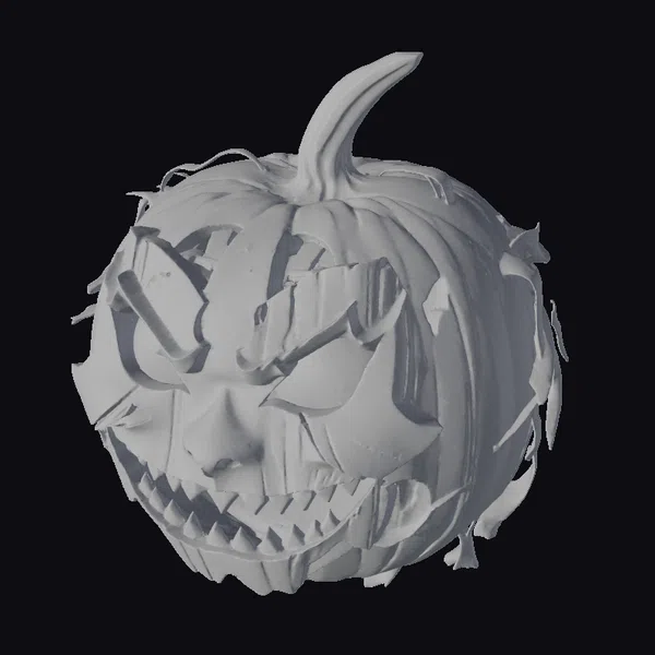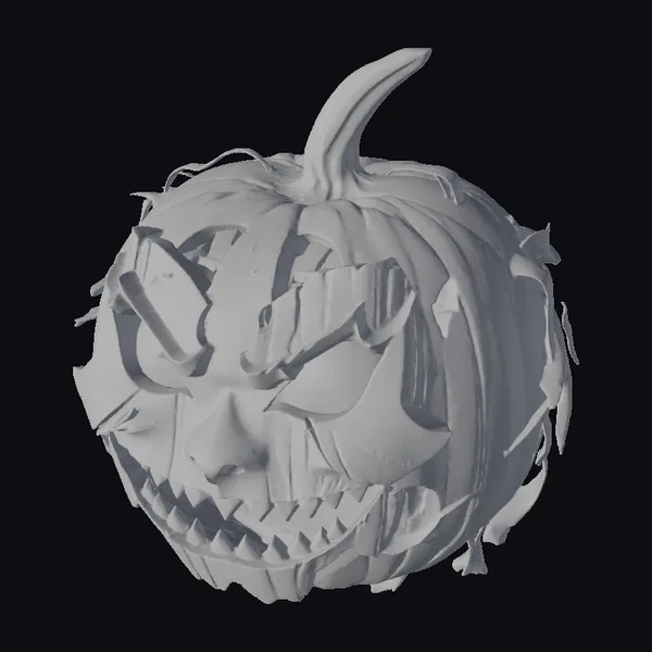 Intricately detailed with a menacing grin, this carved pumpkin face boasts a unique blend of organic and metallic textures. The pumpkin’s surface appears worn, with visible ridges and a curved stem adding to its natural appearance. The carved sections, resembling twisted metal, frame the glowing blue eyes and sharp teeth, creating an otherworldly effect. As a versatile 3D model, it’s perfect for use in games, 3D printing, VR/AR experiences, animations, or designs that require a haunting Halloween element. Its stylized look makes it an excellent fit for projects aiming for a fantastical or horror-themed aesthetic.