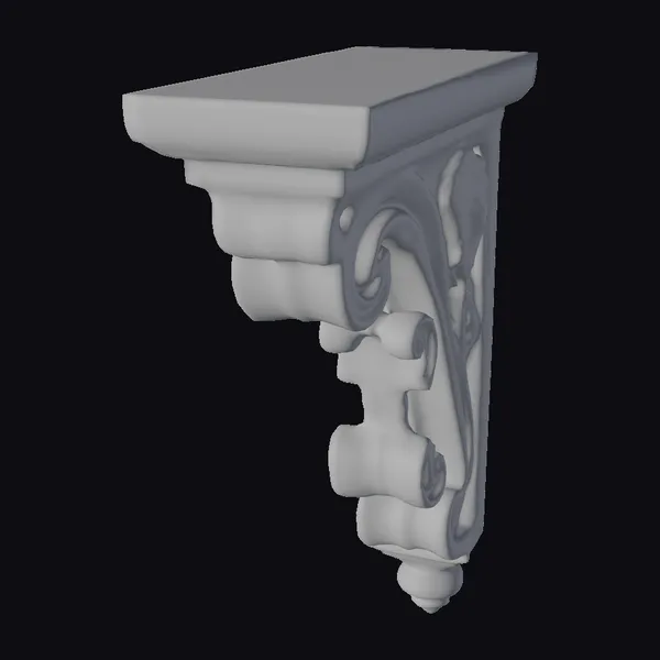 Positioned at an angle, the corbel’s intricate carvings seem to shift and unfold. The wooden surface exhibits a warm, honey-brown hue with subtle grain textures, while the top surface features a smooth, flat finish. Delicate scrollwork and curved motifs adorn the corbel’s sides, adding a touch of sophistication. Whether you’re a game developer, architect, or designer, this detailed model can elevate your projects, bringing a sense of history and character to games, 3D environments, architectural visualizations, or animations.