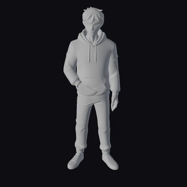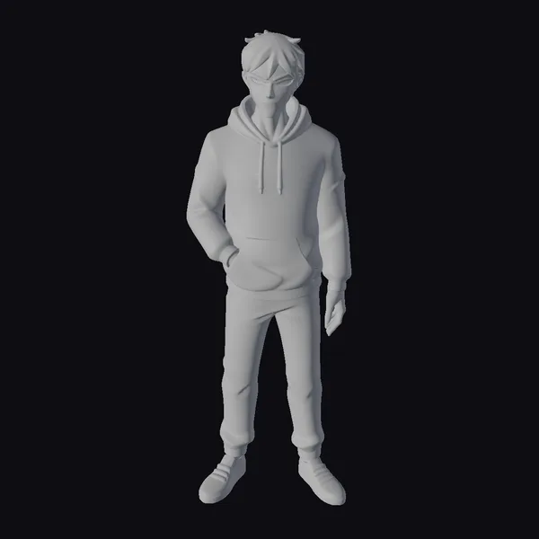 Meet the epitome of casual cool – a young man with a confident stride and a charming smirk. His brown hair is styled in a messy, laid-back look, framing his face as he gazes directly ahead. The blue hoodie, adorned with a drawstring and pocket, is paired with light gray jeans that are cuffed at the ankle, revealing black and white sneakers. The overall effect is one of effortless style, perfect for use in animations, games, or as a design reference. Whether you’re creating a character-driven story or simply need a relatable figure, this model is sure to impress.