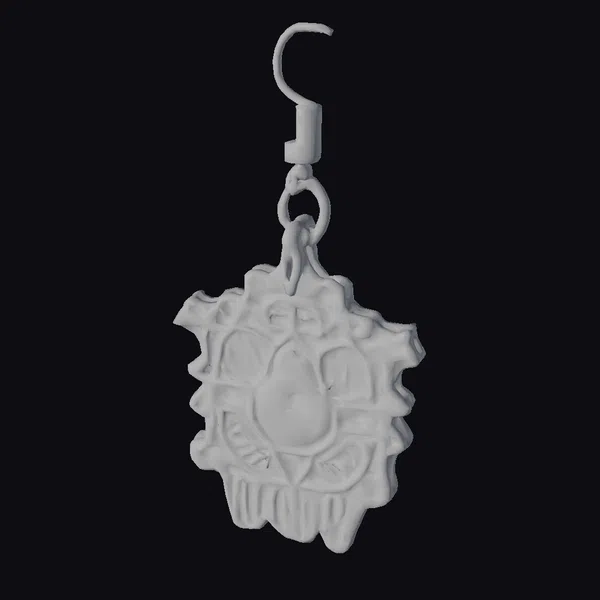 Suspended from a sleek silver hook, this cat earring design showcases a mesmerizing blend of gothic and stylized elements. The feline face at its center is encircled by a halo of light, with holographic details that shift and shine. Ornate patterns dance around the cat, adding to the earring’s mystique. Crafted with attention to detail, this accessory is perfect for those who appreciate a touch of the mysterious and unknown. Ideal for use in game development, 3D printing, virtual reality experiences, animation projects, and design visualizations.