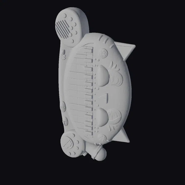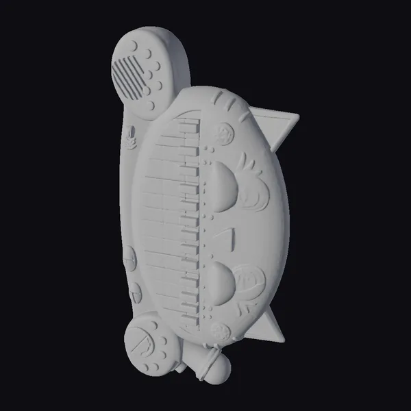 Detailed with precision, this cat keyboard toy boasts a sturdy, rounded body in a warm orange and yellow hue, adorned with a variety of colorful buttons and dots that add to its playful charm. The cat’s face, complete with large, expressive eyes and a cheerful mouth, is prominently displayed on the side. Eight white and black keys are neatly arranged within the cat’s body, ready to produce a symphony of sounds. The toy’s pose, with one end pointing upwards and the other downwards, suggests dynamic movement. Ideal for kids’ rooms, educational settings, or as a prop in creative projects, this model can be used in games, 3D printing, VR/AR experiences, animation, and design projects. Its detailed texture and realistic proportions make it a versatile asset.
