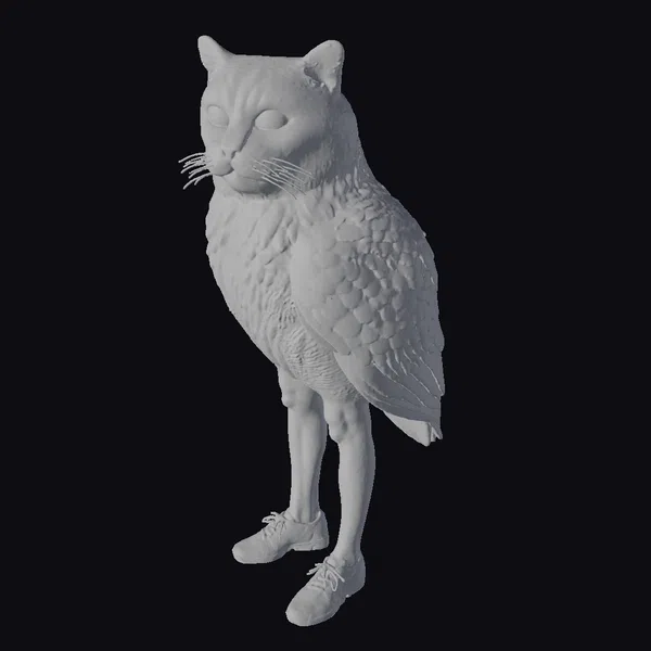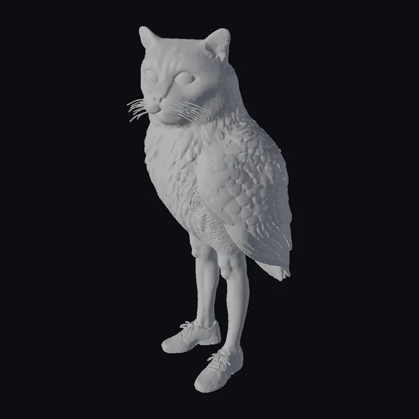 The Model “Cat Owl Humanoid Hybrid” is also available upon request in many other 3D formats, such as 3MF, BLEND, FBX, OBJ, USDZ and others, making it easy to integrate into your project.