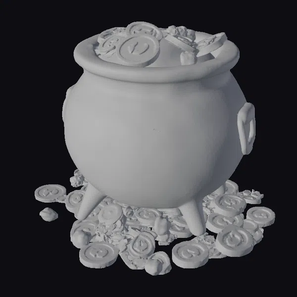 The Model “Cauldron of Golden Coins” is also available upon request in many other 3D formats, such as 3MF, BLEND, FBX, OBJ, USDZ and others, making it easy to integrate into your project.