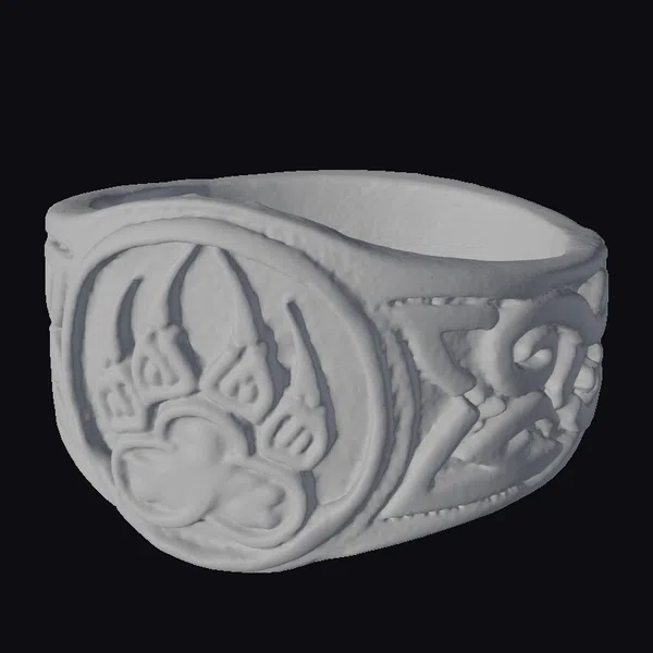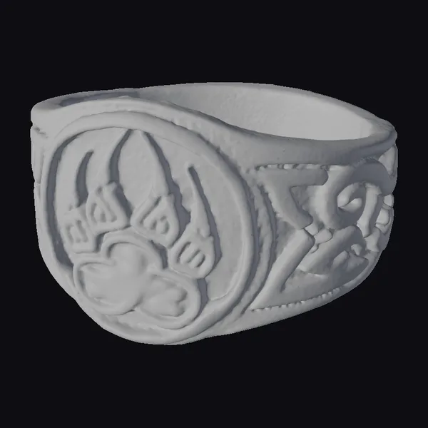 The Celtic bear claw ring boasts a robust, silver band adorned with an intricately designed bear claw motif at its center. The claw, encircled by a stylized border, appears to be emerging from a textured, knotwork-patterned background. The band itself features Celtic-inspired swirls and patterns, adding to the ring’s mystical allure. Crafted with meticulous attention to detail, this piece would be perfect for those who appreciate ancient, symbolic jewelry. Its detailed design makes it suitable for various applications, including game assets, 3D printing, virtual reality environments, and animation projects.