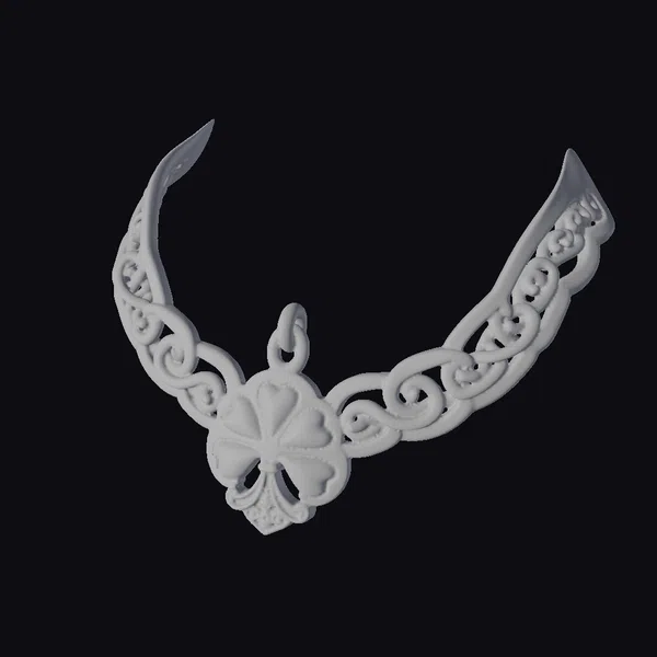 Crafted with meticulous attention to detail, this stunning Celtic-inspired collar necklace features an intricate brushed gold metal design that wraps elegantly around the neck. The piece is crowned with a vibrant, glowing emerald shamrock gemstone charm, adding a pop of color and a touch of whimsy. The necklace’s texture is rich and luxurious, with subtle nuances in the metalwork that catch the light. The emerald charm shines brightly, drawing the eye to its delicate, heart-shaped leaves. This exquisite piece is perfect for adding a touch of high-end fashion to 3D models, games, animations, or VR/AR experiences. Its intricate design and luxurious materials make it an ideal choice for designers seeking to elevate their projects with a sense of sophistication and glamour.