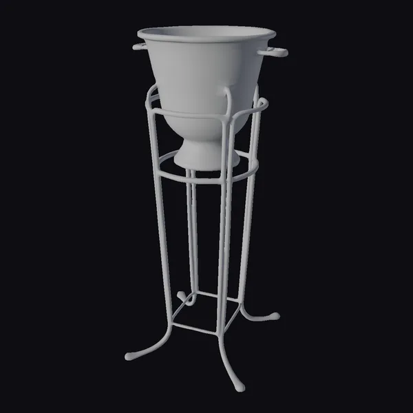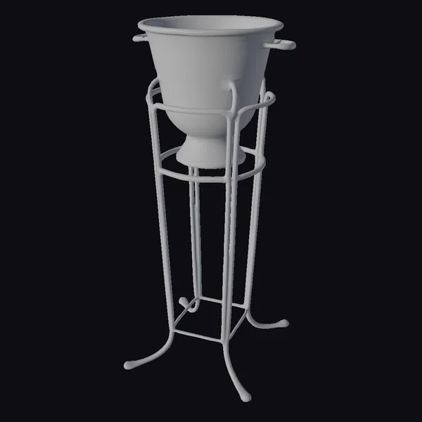 Positioned dynamically on its stand, the champagne cooler boasts a reflective, chrome exterior with a subtle curvature, inviting you to imagine the celebratory clinks and toasts it will witness. The stand, with its slender, curved legs and supportive framework, adds a touch of industrial chic to the overall design. Crafted with attention to detail, this model showcases a blend of form and function, making it ideal for 3D rendering in games, architectural visualizations, or advertising materials. Its realistic appearance and high-quality details make it suitable for various applications, from print and VR/AR experiences to animation and design projects.