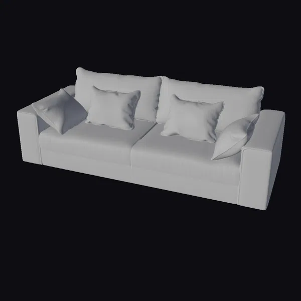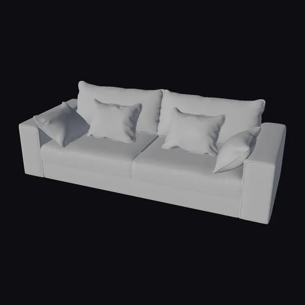 Detailed with precision, this charcoal sofa model showcases a sturdy frame, wrapped in a luxurious, purple-gray fabric that catches the light with a subtle sheen. The sofa’s clean, modern lines are accentuated by five plush pillows, arranged artfully to evoke a sense of comfort and invitation. The pose highlights the sofa’s sleek profile, with a low back and arms that frame the seating area with sophistication. Ideal for designers and creators looking for a realistic, high-quality model for games, print projects, VR/AR experiences, animations, or architectural visualizations. The model’s attention to detail, from the stitching on the cushions to the texture of the fabric, ensures a versatile and engaging addition to any project.