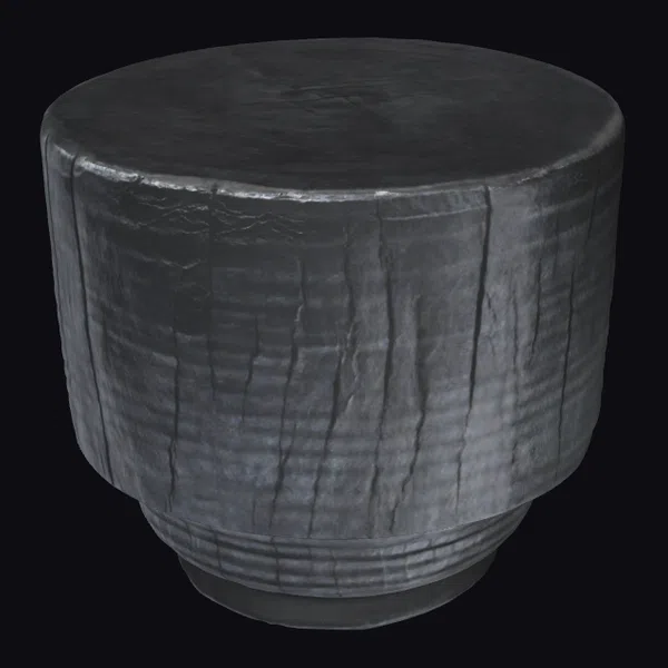 Crafted to resemble a piece of wood that has been through a fire, this charred wooden stool stands with a quiet presence. Its cylindrical body, slightly wider at the top than the base, features a surface etched with vertical lines that mimic the natural grain of wood, now darkened and cracked. The base of the stool narrows slightly, providing stability while maintaining its rustic charm. The texture of the wood is rough, with a subtle sheen that hints at its charred but resilient nature. This model is perfect for designers and creators looking to add a touch of rugged sophistication to their projects, whether it’s for a game environment, a 3D animation, architectural visualization, or product design. Its unique aesthetic can bring a sense of drama and realism to any scene.