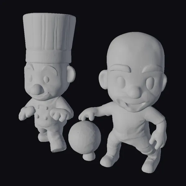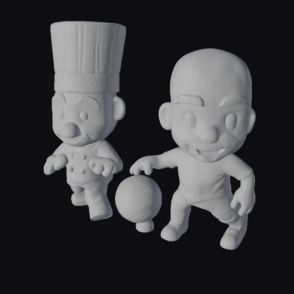 The Model “Chef and Soccer Player Duo” is also available upon request in many other 3D formats, such as 3MF, BLEND, FBX, OBJ, USDZ and others, making it easy to integrate into your project.