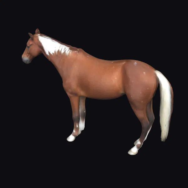 The Model “Chestnut Horse with White Markings” is also available upon request in many other 3D formats, such as 3MF, BLEND, FBX, OBJ, USDZ and others, making it easy to integrate into your project.