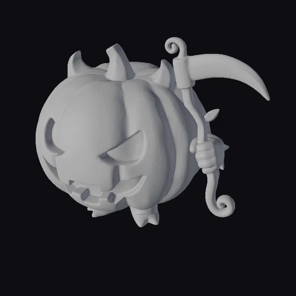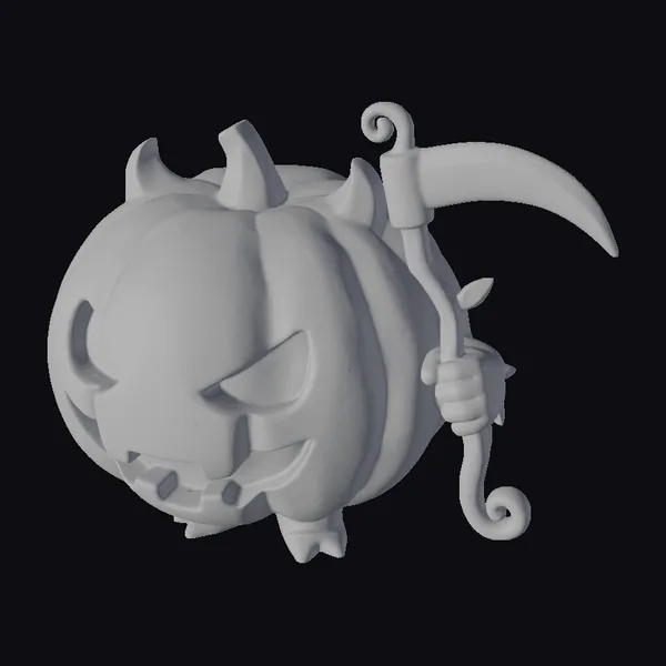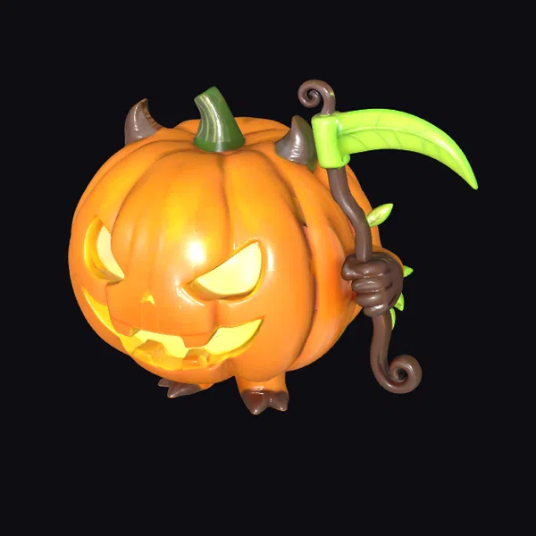 Detailed with precision, this stylized pumpkin imp stands out with its vibrant orange pumpkin body, adorned with a carved face and tiny horns. The figure’s stubby arms and legs are crafted with attention to detail, while its neon-green toy scythe adds a modern twist. The glossy paint brings out the texture of the pumpkin and the smooth finish of the scythe. Ideal for Halloween enthusiasts and collectors of unique figurines, this model can be used in various creative projects, such as game development, animation, or as a decorative piece for virtual environments.