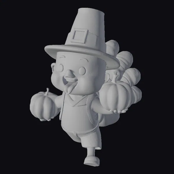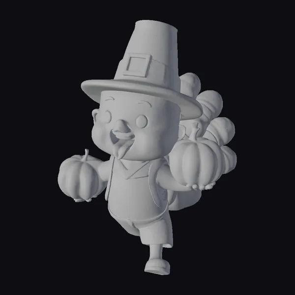 Detailed with precision, this chibi turkey superhero stands out with its dynamic pose, showcasing its determination to save the day with a bundle of pumpkins in tow. The pilgrim hat adds a historical touch, while the bright orange and red pumpkins contrast beautifully with the turkey’s brown feathers. The model’s textures are smooth and detailed, with a clear emphasis on the character’s happy expression and the intricate design of the hat and pumpkins. The lighting highlights the turkey’s cheerful features and the vibrant colors of the pumpkins, creating a lively and engaging visual effect. Ideal for use in animations, games, or as a decorative 3D model, this chibi turkey superhero is sure to bring a smile to anyone’s face.