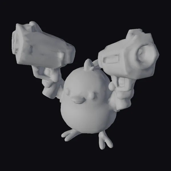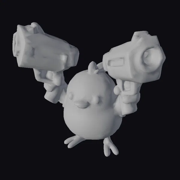 Get ready to quack up your 3D models with this adorable chick, posed dynamically with two water guns in hand. The chick’s bright yellow feathers are smooth and rounded, with a subtle texture that catches the light. Its big, shiny eyes sparkle with mischief, while its tiny orange beak and feet add a pop of color. The blue water guns are detailed with purple accents, adding a cool contrast to the overall playful vibe. This model is perfect for gaming, animation, or decorative projects that need a dash of whimsy.