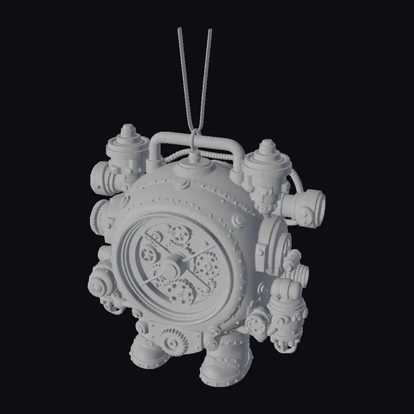 This stunning steampunk diving helmet boasts a mesmerizing clockwork mechanism on its face, surrounded by a halo of brass and copper. The vibrant orange body is punctuated by metallic details, including copper pipes, brass accents, and rivets. The helmet’s design exudes an air of industrial sophistication, as if it’s ready to plunge into the depths of a fantastical world. Its intricate details make it perfect for 3D printing, animation, or as a design reference. The model’s complexity and beauty are sure to captivate anyone who lays eyes on it.