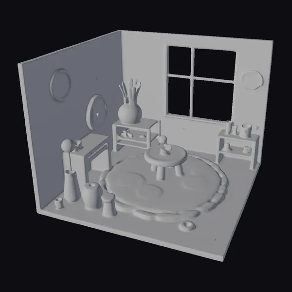 Get lost in the details of this meticulously crafted cartoon play room! The isometric view showcases a delightful space filled with a small table and chairs, a vibrant play carpet, and an assortment of toys and furniture. The walls are a kaleidoscope of colors, with playful patterns and shapes adding to the whimsy. A large window dominates one wall, pouring in a warm glow. This 3D model is perfect for bringing a touch of fantasy to games, animations, or designs. Its unique blend of playfulness and charm makes it an ideal setting for storytelling or immersive experiences.