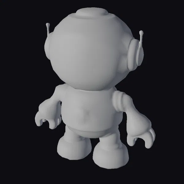 Standing proudly with its arms akimbo, this colorful robot figure boasts a glossy finish that accentuates its playful design. The robot’s body is primarily blue, complemented by yellow and red accents that add a pop of color. Its large head, adorned with a black faceplate and glowing blue eyes, sits atop a rounded body with visible joints, suggesting a posable toy. Two small antennae on the top of its head add a touch of futurism. This model is perfect for 3D printing, animation projects, or as a decorative piece. Its whimsical design makes it an excellent addition to any sci-fi or cartoon-themed setting.