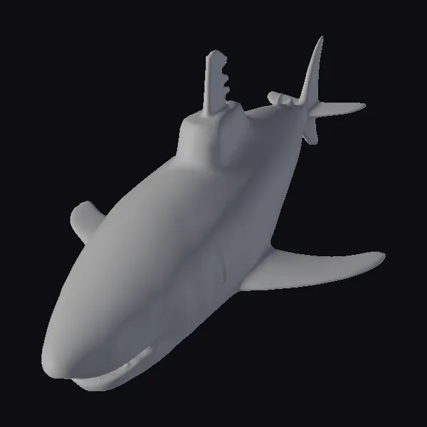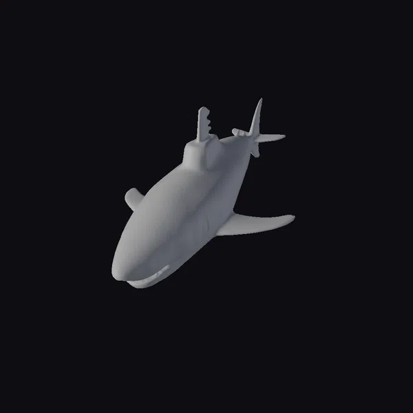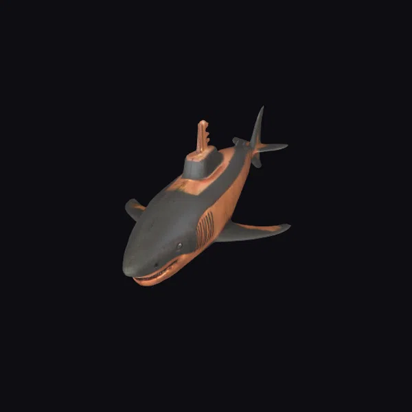 Positioned in a dynamic forward tilt, the submarine’s shark form is meticulously detailed, from the copper hull that shimmers with a warm, metallic glow to the dark gray accents that mimic the ocean’s depths. The conning tower rises like a periscope, adding to the vessel’s menacing profile. Textures that resemble rivets and mechanical components add a layer of realism, suggesting a blend of industrial and magical craftsmanship. This model is perfect for use in games, 3D printing, VR/AR experiences, animation, and design projects, offering a unique blend of science fiction and fantasy elements.