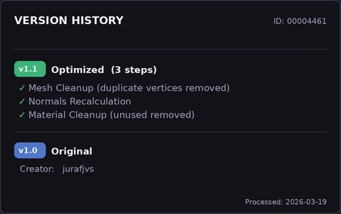 Further optimized in this latest version 1.1, this Very High Poly Premium 3D model is available immediately in GLB and STL file formats and can be purchased with licenses for both personal and commercial use.